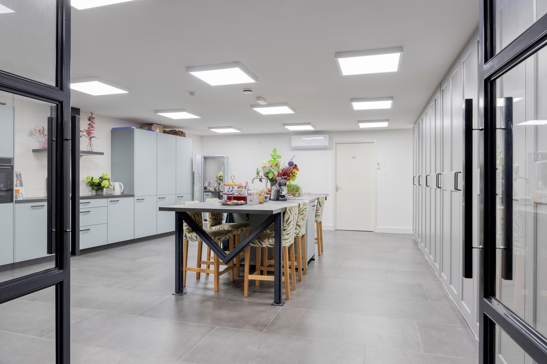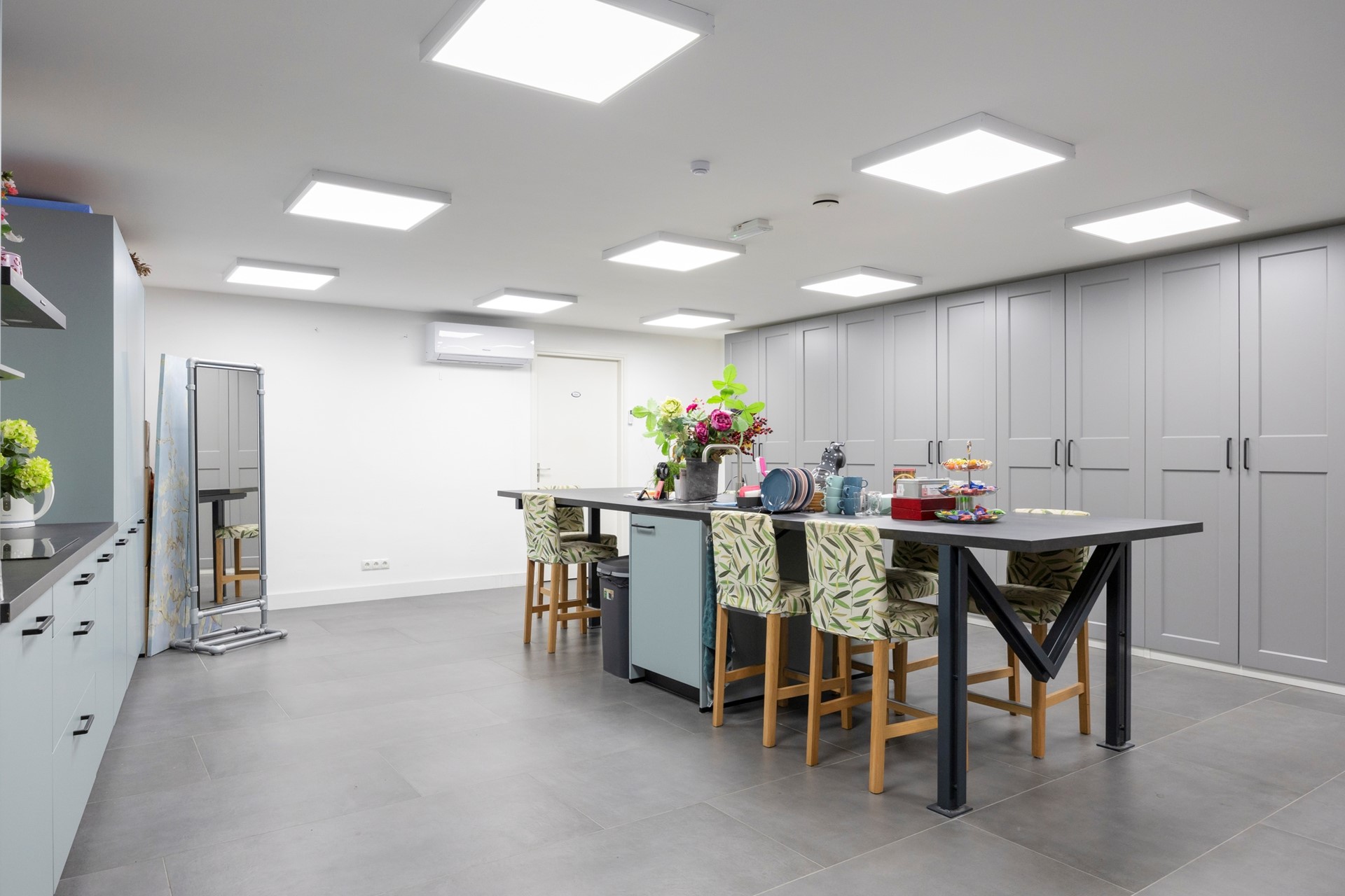 • Ruime keuken met diverse inbouwapparatuur, zitje en sanitaire voorzieningen