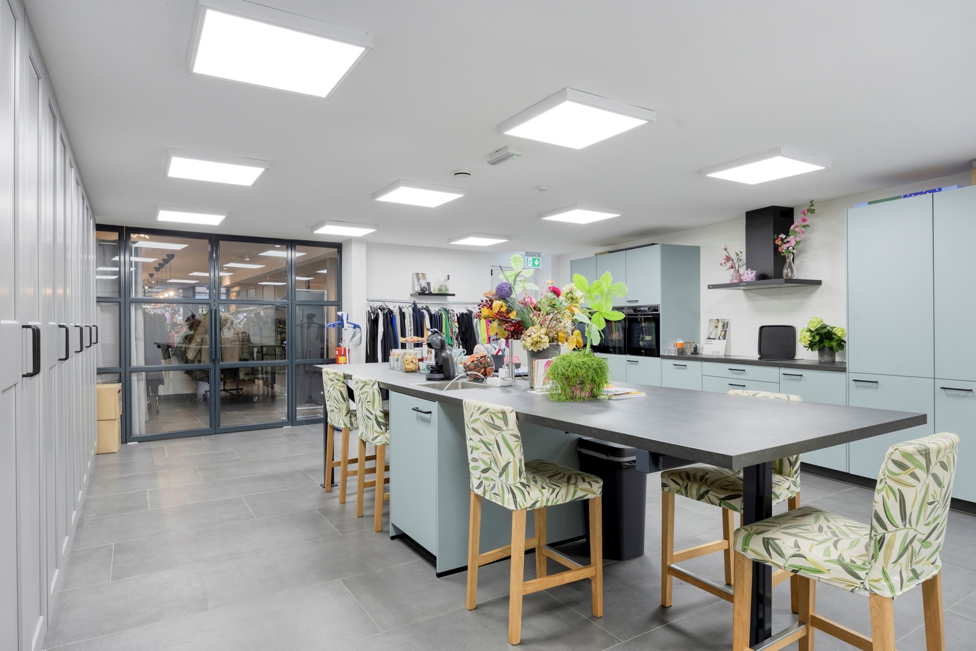 • Open keuken met inductie kookplaat, koel-vriescombinatie, combi oven/magnetron, vaatwasser en afzuigkap