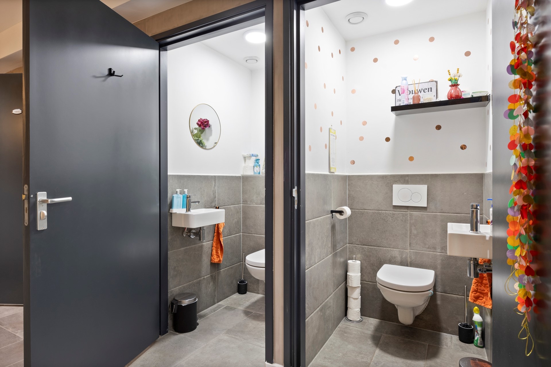 • Badkamer met douche, toilet, wastafel en witgoedaansluitingen