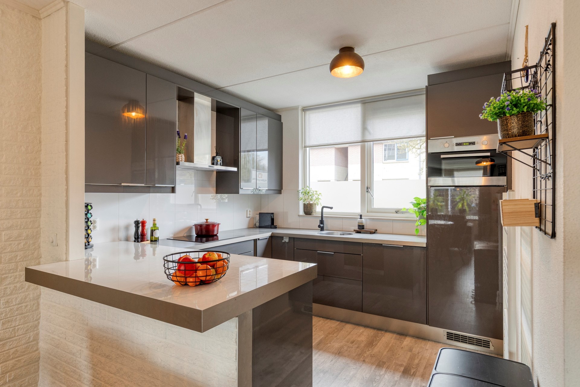 Aan de voorzijde van de woning bevindt zich de open keuken. Deze staat in directe verbinding met de woonkamer en vormt samen een fijne leefruimte.
